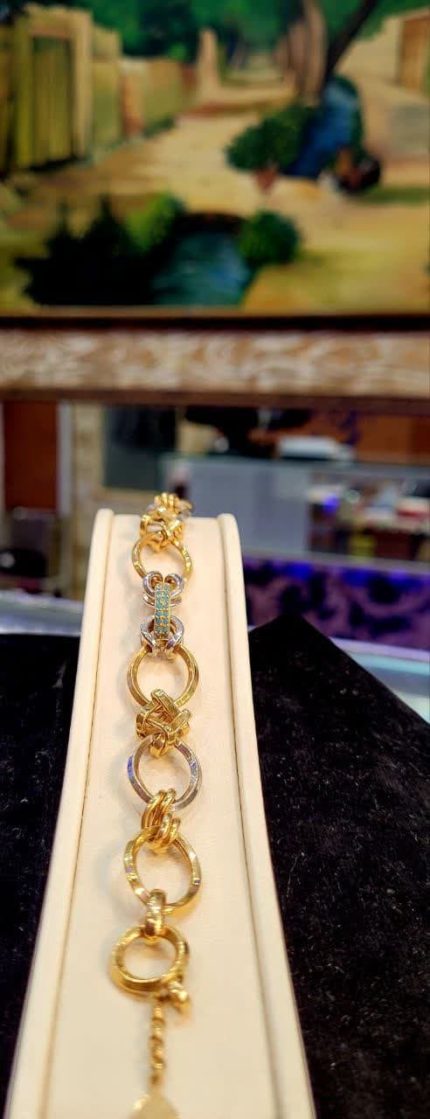 دستبند زنجیری طلا متصل به زنجیر نازک، ضخامت کمی داشته و سبک وزن است. به همین دلیل برای خرید دستبند زنجیری نازک نیاز نیست مبلغ بالایی را بپردازید. این دستبند طلای زیبا، یک عدد پلاک یا بیشتر از این تعداد پلاک را به صورت ردیفی به تصویر می کشد. شاید این دستبند ظرافت زیادی داشته باشد؛ اما از لحاظ استحکام مطمئن بوده و تا ضربه ای به آن وارد نشود؛ پاره نخواهد شد. همچنین پلاک هایی که روی این دستبند به چشم می خورند؛ ظریف و متنوعند. مثل دستبند زنجیری با پلاک طرح پر، طرح قلب و دست، طرح پولکی، طرح پا، طرح گل و …دستبند تماما زنجیر